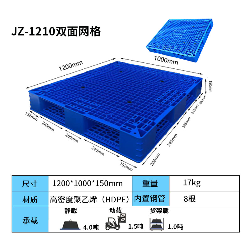 雙面網(wǎng)格塑料托盤其特點(diǎn)是正反兩面的結(jié)構(gòu)相同,均為網(wǎng)格狀,因此兩面都可以使用,故被稱為雙面網(wǎng)格塑料托盤。這種托盤通常應(yīng)用于食品廠、化工廠、化肥制造、冷庫等行業(yè)。雙面網(wǎng)格塑料托盤的插孔較低,因此不適合使用地牛拖車,在選擇使用時(shí)需要特別注意。根據(jù)成型工藝的不同,雙面網(wǎng)格塑料托盤可以分為一體成型雙面網(wǎng)格和焊接雙面網(wǎng)格托盤兩種類型。